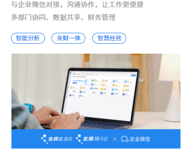 客户经营与业财融合的一体化解决方案 与企业微信对接,沟通协作,让工作更便捷 多部门协同、数据共享、财务管理